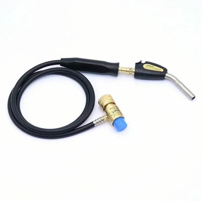 ОписаниеГорелка используется при паечных работах в процессе монтажа и ремонта холодильного оборудования. Горелка со шлангом и пьезоподжигом имеет очень удобную особенность – она оборудована пьезоподжигом , серьезно облегчающим работу. Данная горелка представляет собой ремонтное устройство, поэтому, чтобы не допустить расплавление блока пьезоподжига, работать необходимо с перерывами, чтобы сопло успевало остыть.