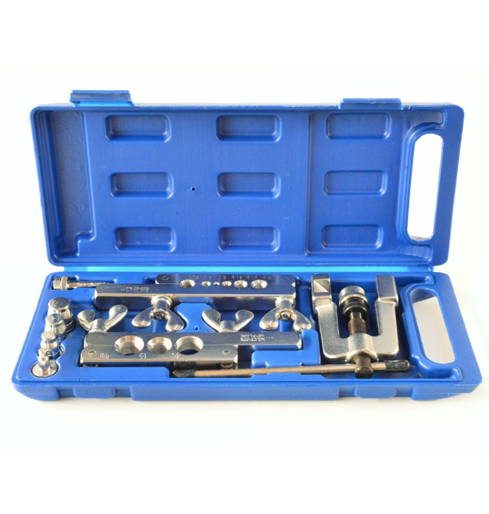 Поставляется в кейсе. В комплекте также 2 плашки и 5 насадок для труборасширения. Изготовлена из высококачественной стали. Благодаря вальцовке можно с лёгкостью изменить диаметр трубки и герметично состыковать ее с ответной частью. Муфта проворачивается без особых усилий, создавая при этом аккуратное расширенное отверстие. -