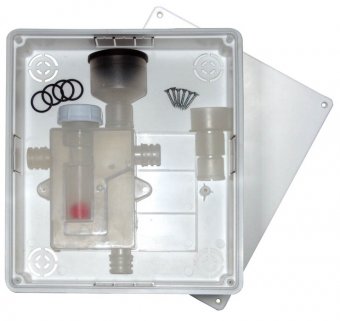 В стандартный комплект сифона входит набор уплотнительных колец, прокладка для избежания протечки воды, соединитель для подключения дренажных шлангов различного диаметра, пластиковый бокс с шурупами для крепления сифона в боксе. -